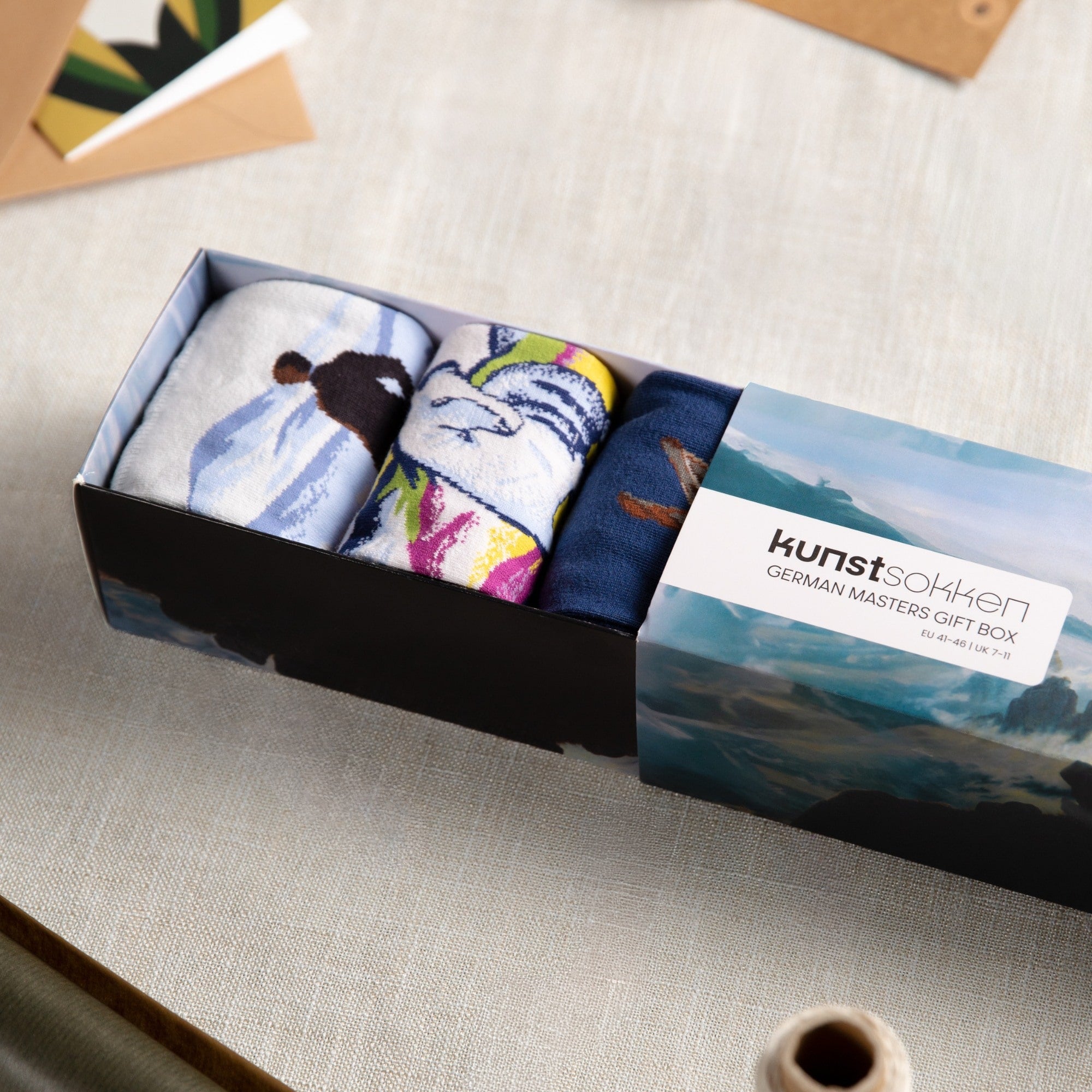 The packaging is based on Friedrich's masterpiece, with refined details that beautifully complement the socks.