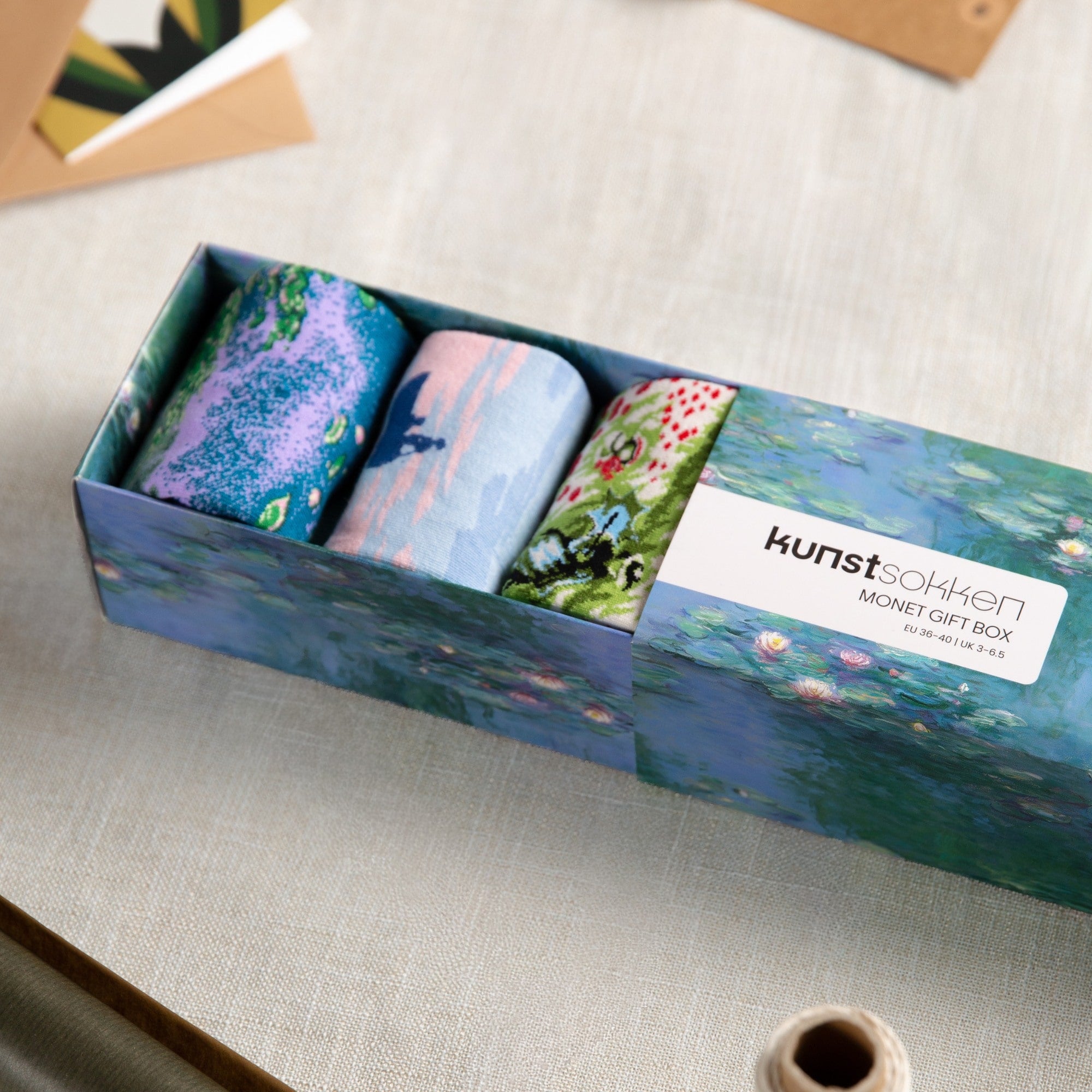 The packaging is designed to honour Monet's art, with refined details that beautifully complement the socks.
