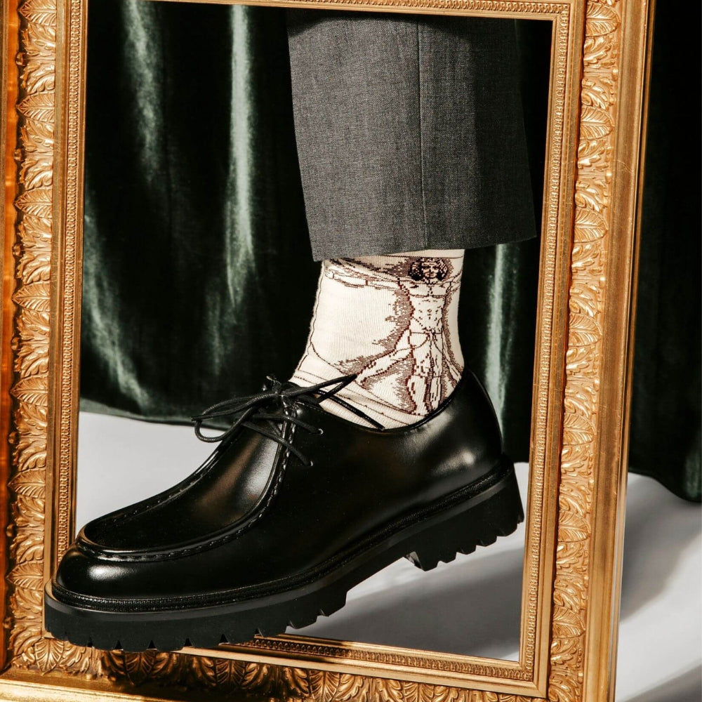 Discover the harmony of art and science. The precise lines of da Vinci's masterpiece are intricately woven for a unique look.